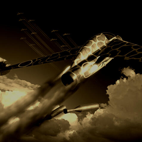 A last ditch effort conducted by the Black Phoenix following the closure of the Great War. Despite becoming an enemy to the entire world, it refused to surrender. Based on a certain suicide Aircraft, Dirk Aerospace Arsenal developed the Rakurai with the intent to cause as much damage based on its speed. However, since it had no regard for the pilots condition when launched, the moment the Rakurai is deployed, the sudden force and speed will knock the pilot unconscious whilst it crashes towards its destination. For this particular model, the Aircraft was designed for Reinhild to use following her attempted desertion.When the S model from the bomber dropped her aircraft, the speed and overwhelming force she experienced became something she refused to remember, even after she had survived the impact. The Rakurai of standard variants were capable of leveling an entire metropolitan area with its special bombs. The one she flew, was capable of destroying an entire nation from the records. Due to the extreme speed and terminal velocity, the fuel it consumes is spent within thirty seconds. The rest is then guided by the pilot, and because of its range, the RXZ-4 Rita's were modified to carry these pilots to their deaths.Not a single model, nor the S variant survived to this day. All were either destroyed, or launched during the final battles of the Great War.